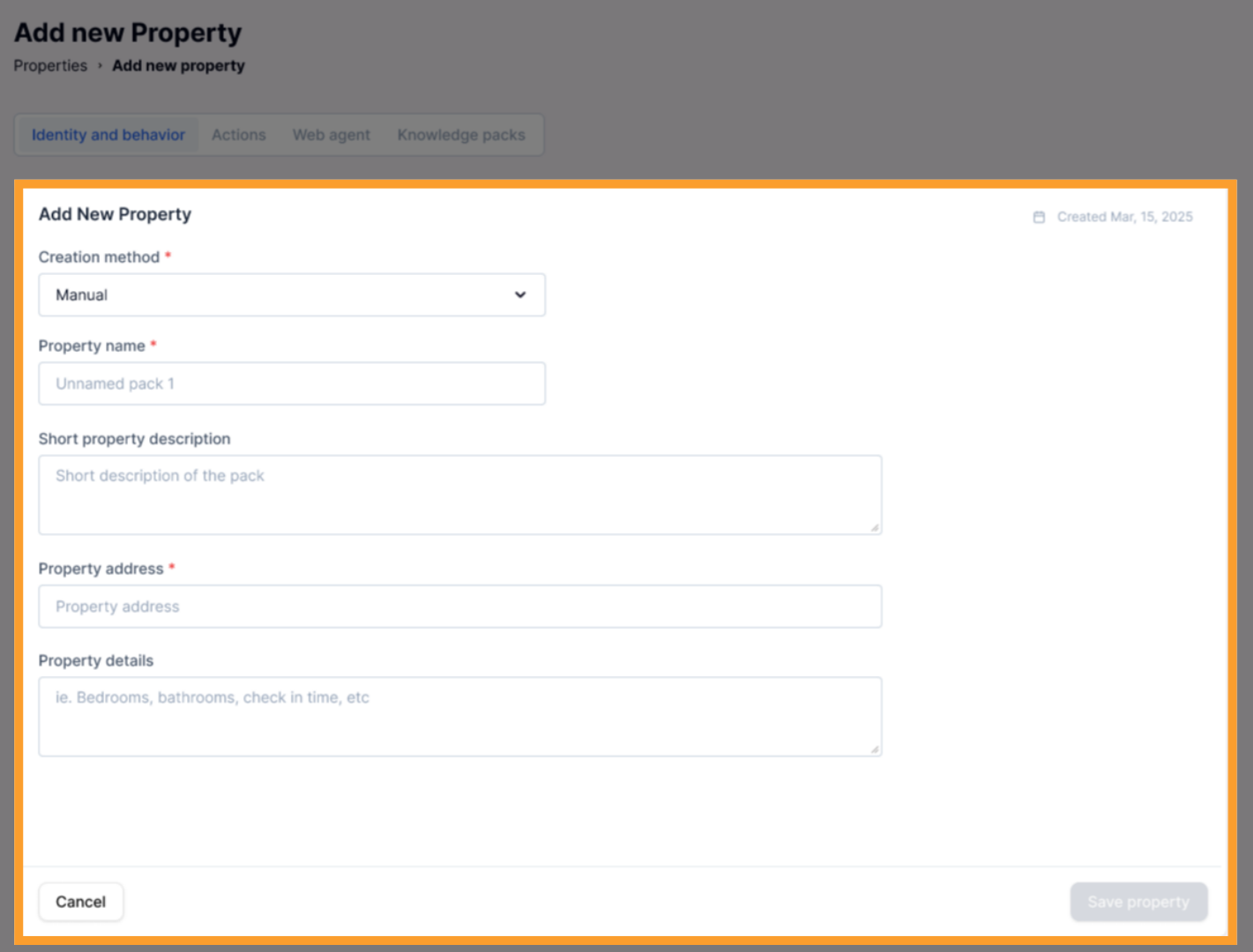 You can attach Knowledge Packs to properties, giving your concierge and outbound scenarios shared access to structured company information.- Assign packs directly to a property.